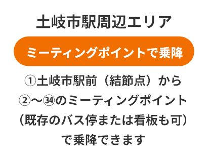 ※ ①土岐市駅前(結節点)が乗車地・降車地のどちらかであれば土岐市駅周辺エリアの乗降場所との相互移動ができます。